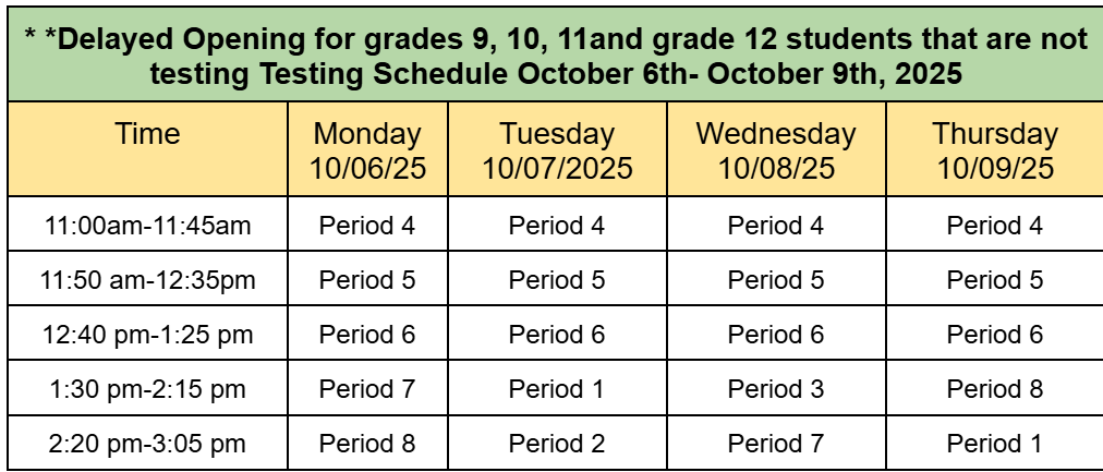 - Seniors testing must report to school at 8:00 a.m..